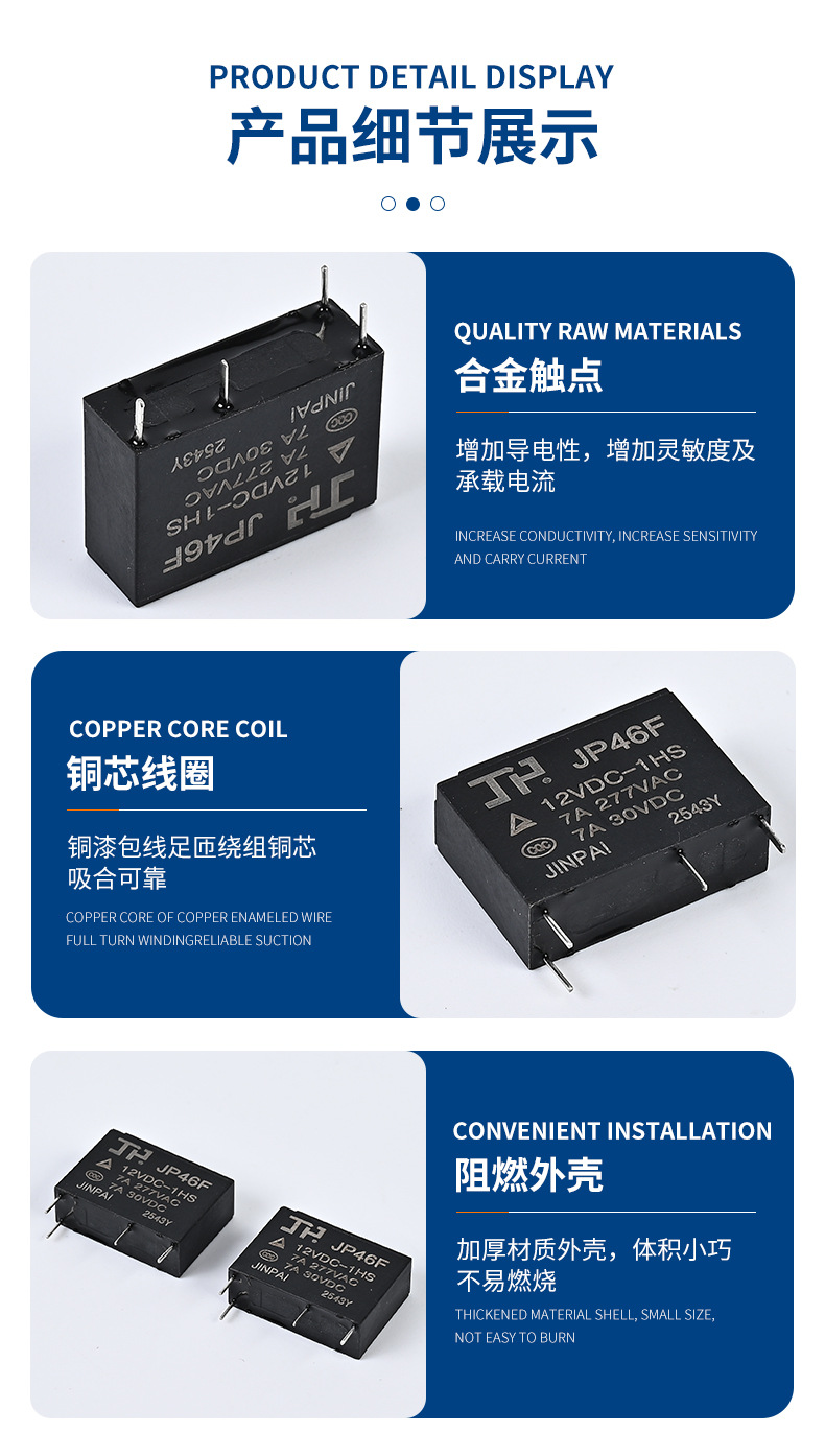 它主要由铁芯线圈,电枢(动铁芯),绷簧,动触头,静触头和一些端子组成。静触头包括常闭触头和常开触头。在正常情况下,动触头闭合到常闭触头。继电器基座组合只需在线的两头施加相对的电压,相对的电流就会流过线圈,然后产生电磁效应。电枢将在电磁力吸力弓的效果下吸收绷簧抵靠绷簧芯的回复力,然后驱动运动。触点