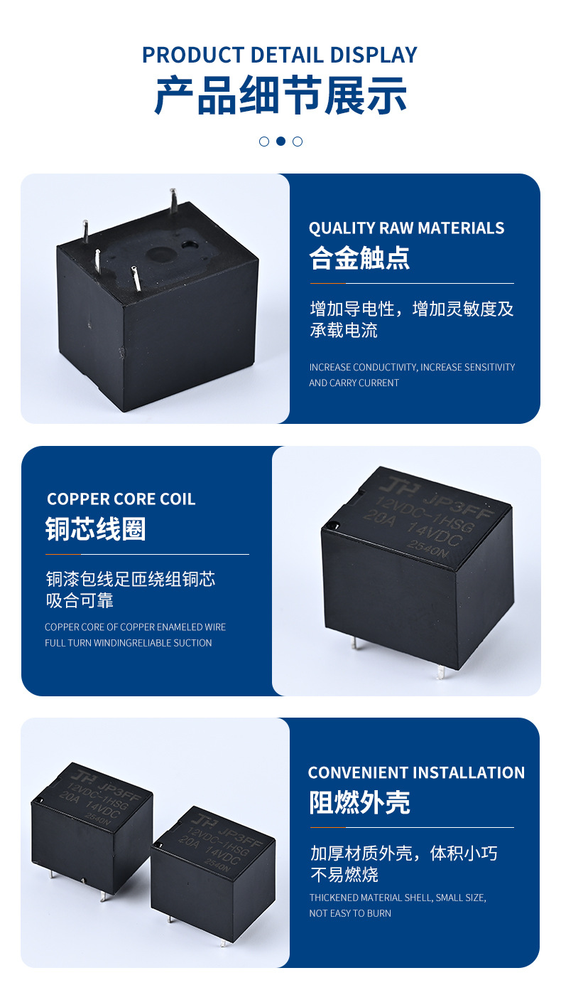 它主要由铁芯线圈,电枢(动铁芯),绷簧,动触头,静触头和一些端子组成。静触头包括常闭触头和常开触头。在正常情况下,动触头闭合到常闭触头。继电器基座组合只需在线的两头施加相对的电压,相对的电流就会流过线圈,然后产生电磁效应。电枢将在电磁力吸力弓的效果下吸收绷簧抵靠绷簧芯的回复力,然后驱动运动。触点