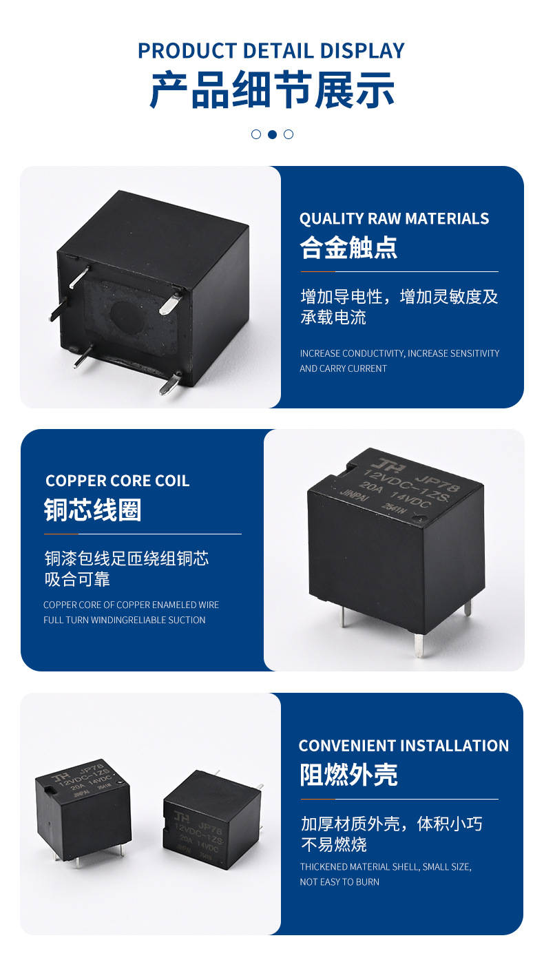 它主要由铁芯线圈,电枢(动铁芯),绷簧,动触头,静触头和一些端子组成。静触头包括常闭触头和常开触头。在正常情况下,动触头闭合到常闭触头。继电器基座组合只需在线的两头施加相对的电压,相对的电流就会流过线圈,然后产生电磁效应。电枢将在电磁力吸力弓的效果下吸收绷簧抵靠绷簧芯的回复力,然后驱动运动。触点
