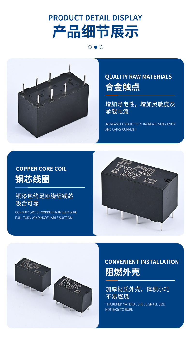 它主要由铁芯线圈,电枢(动铁芯),绷簧,动触头,静触头和一些端子组成。静触头包括常闭触头和常开触头。在正常情况下,动触头闭合到常闭触头。继电器基座组合只需在线的两头施加相对的电压,相对的电流就会流过线圈,然后产生电磁效应。电枢将在电磁力吸力弓的效果下吸收绷簧抵靠绷簧芯的回复力,然后驱动运动。触点