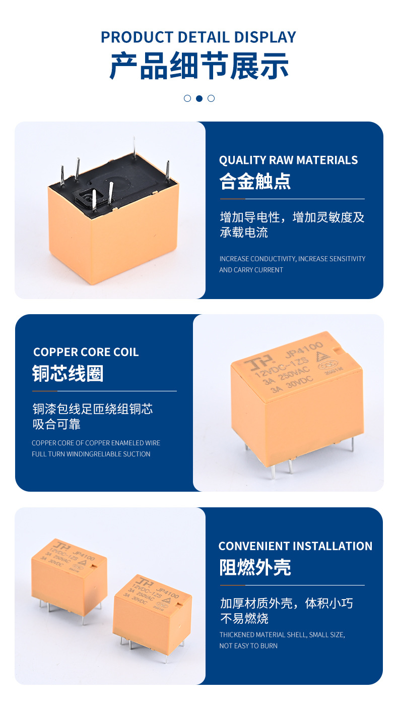 它主要由铁芯线圈,电枢(动铁芯),绷簧,动触头,静触头和一些端子组成。静触头包括常闭触头和常开触头。在正常情况下,动触头闭合到常闭触头。继电器基座组合只需在线的两头施加相对的电压,相对的电流就会流过线圈,然后产生电磁效应。电枢将在电磁力吸力弓的效果下吸收绷簧抵靠绷簧芯的回复力,然后驱动运动。触点